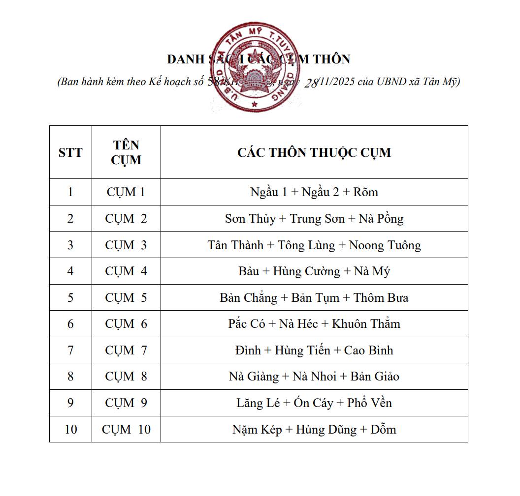 - Nhân dân 30 thôn, chia thành 10 cụm thôn (có danh sách kèm theo).