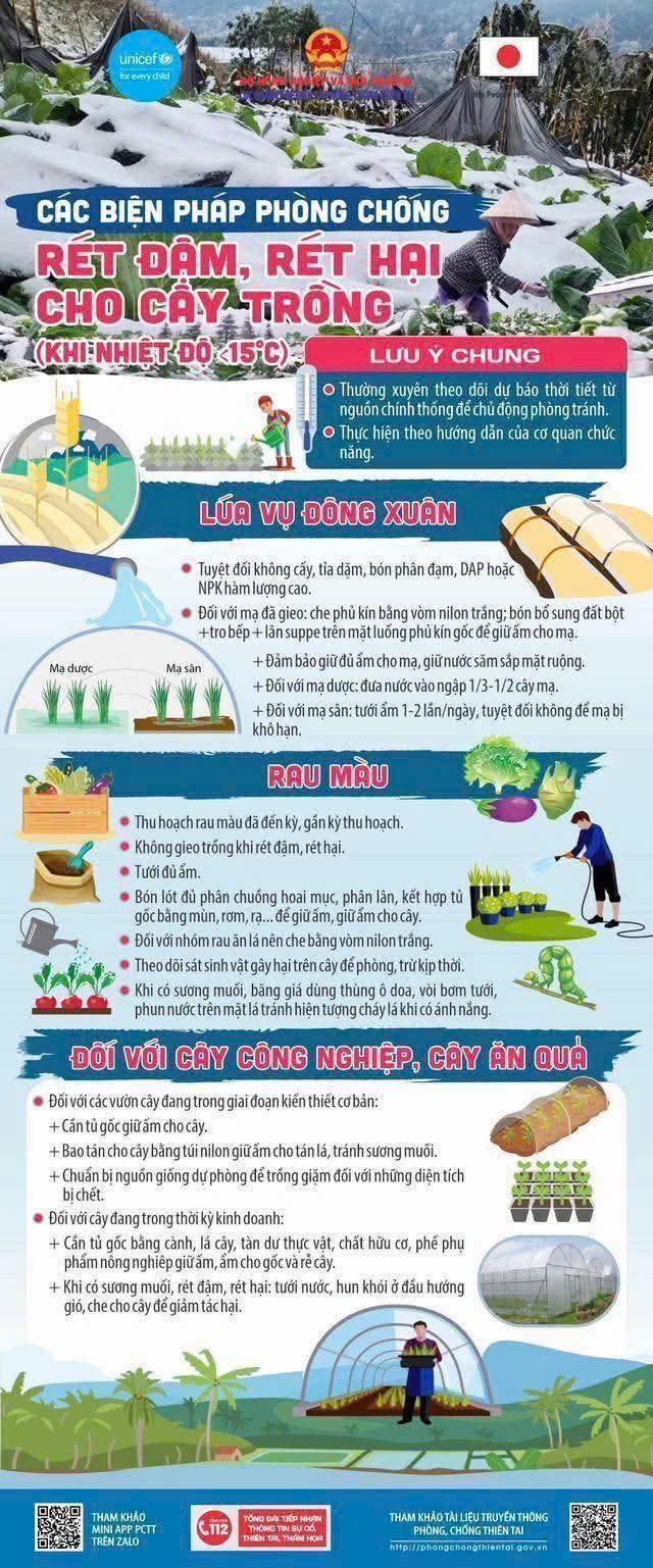 - Tạm dừng gieo trồng: Tuyệt đối không gieo trồng các loại rau màu khi đang xảy ra rét đậm, rét hại.
