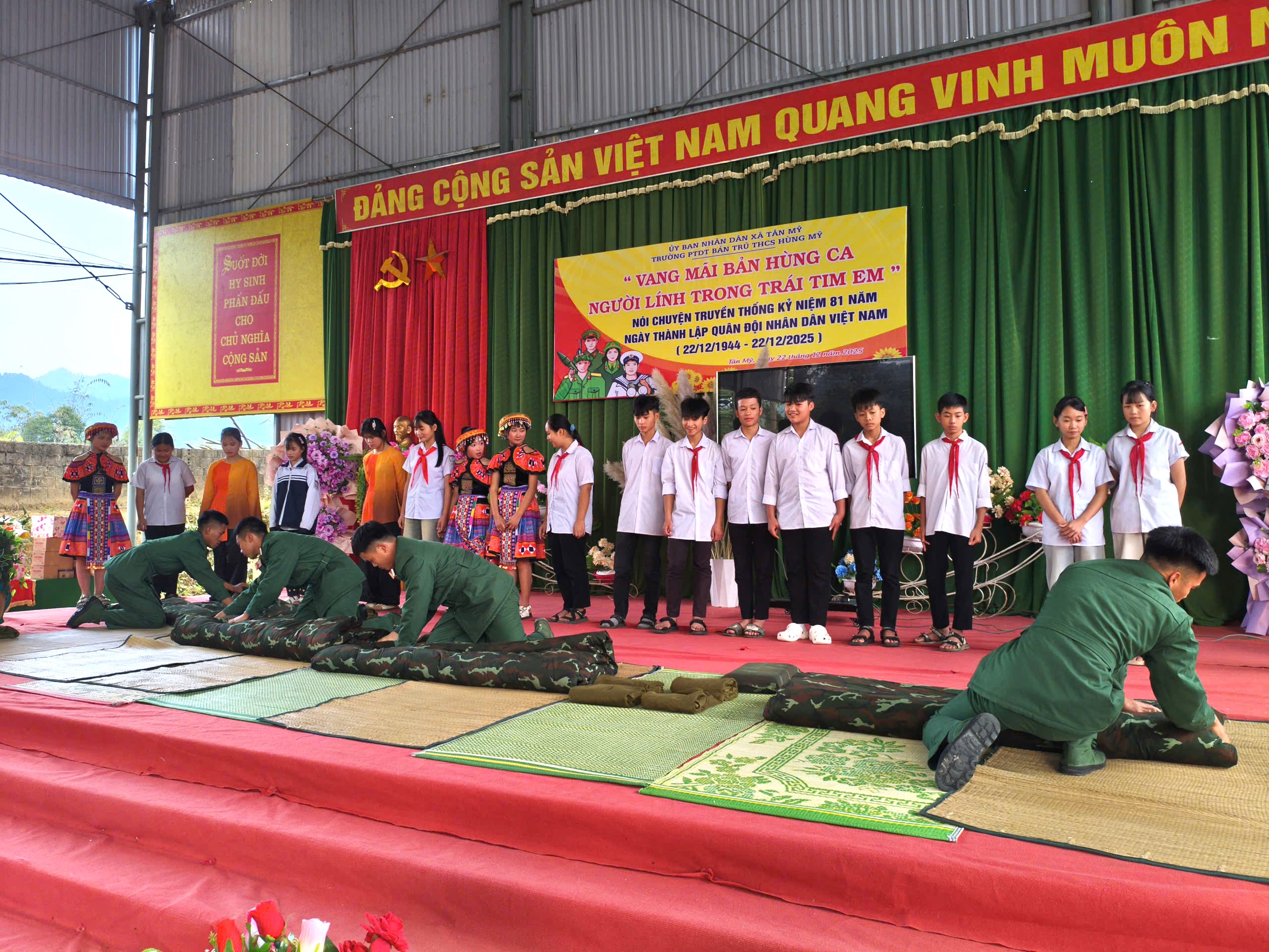 Tại chương trình, các đại biểu và các em học sinh đã cùng nhau ôn lại lịch sử vẻ vang 81 năm xây dựng, chiến đấu và trưởng thành của Quân đội Nhân dân Việt Nam. Từ 34 chiến sĩ đầu tiên của Đội Việt Nam Tuyên truyền Giải phóng quân, dưới sự lãnh đạo của Đảng và Bác Hồ, quân đội ta đã lớn mạnh không ngừng, lập nên những chiến công hiển hách trong sự nghiệp giải phóng dân tộc và bảo vệ Tổ quốc .