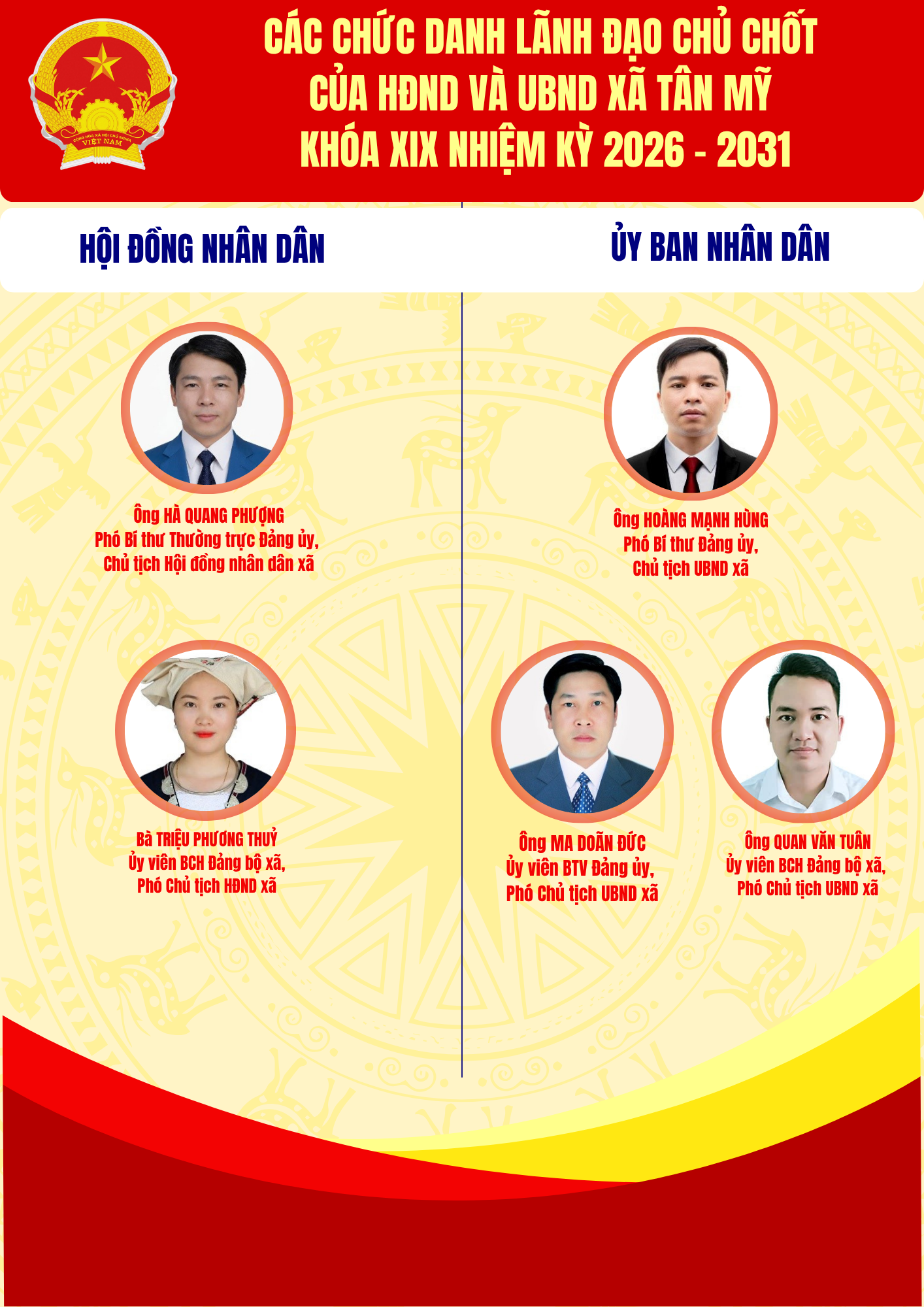 DANH SÁCH CHỦ TỊCH, PHÓ CHỦ TỊCH HĐND VÀ UBND XÃ TÂN MỸ KHÓA XIX, NHIỆM KỲ 2026 - 2031