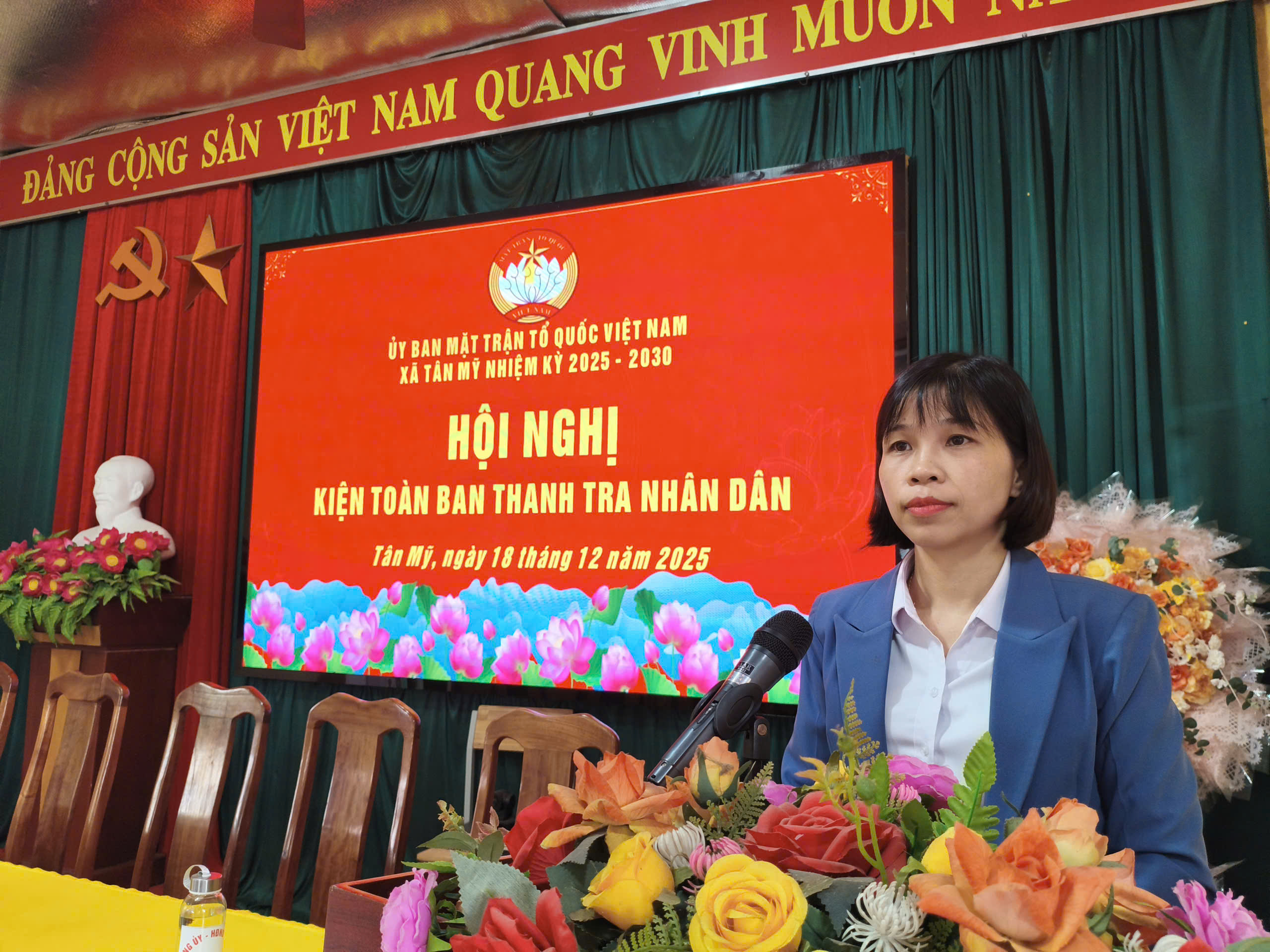 Đồng chí Hà Thị Mai - Ủy viên Ban Thường vụ Đảng ủy, Chủ tịch Ủy ban MTTQ xã điều hành nội dung kiện toàn Ban thanh tra Nhân dân