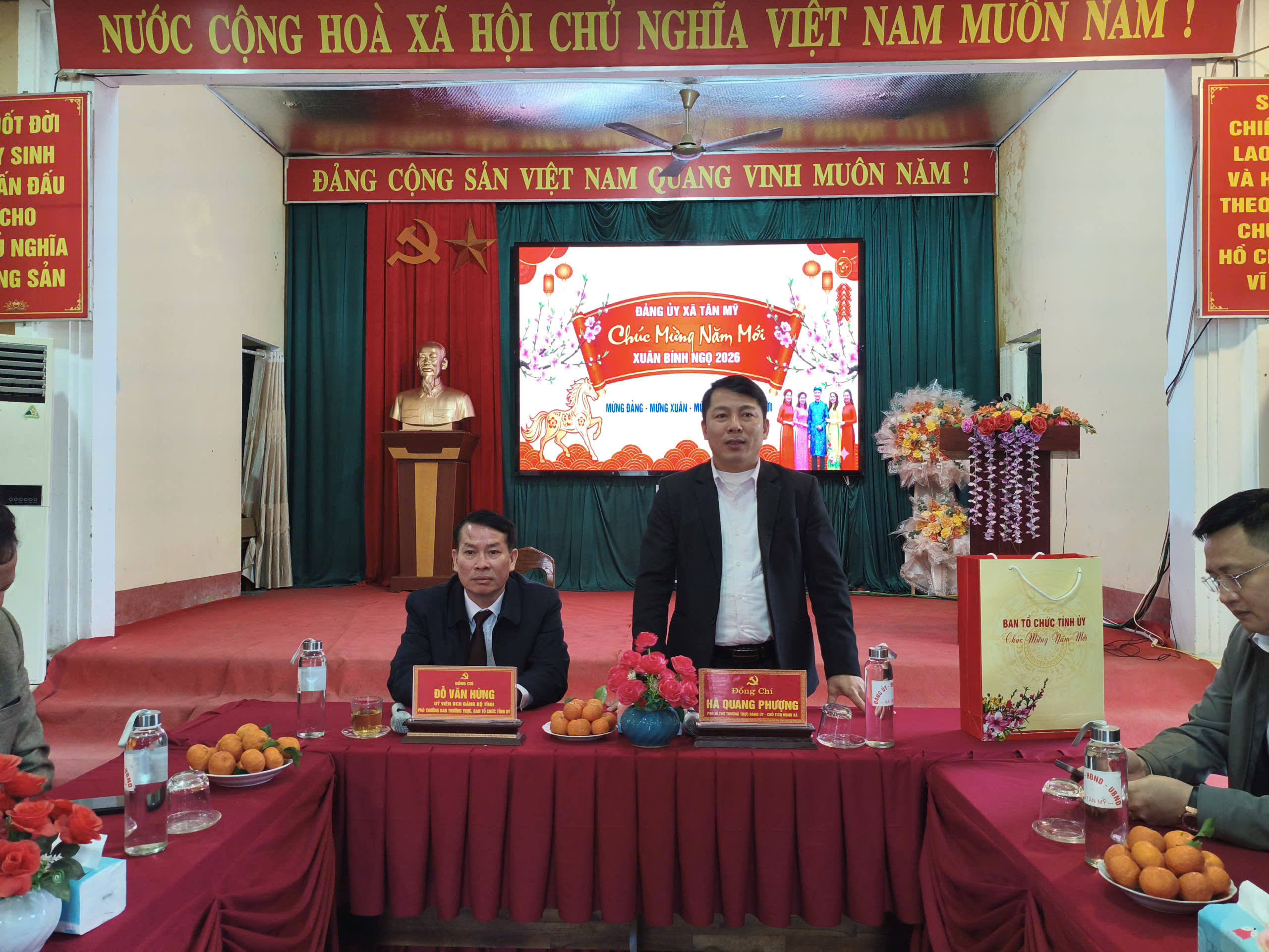 Trong không khí ấm áp và thắm đượm tình đoàn kết, đồng chí Đỗ Văn Hùng đã trao tặng những phần quà ý nghĩa của Tỉnh ủy cho tập thể lãnh đạo xã Tân Mỹ. Buổi thăm hỏi kết thúc trong niềm phấn khởi, củng cố thêm niềm tin và quyết tâm của cán bộ, nhân dân xã Tân Mỹ trong năm mới Bính Ngọ và giai đoạn phát triển tiếp theo.