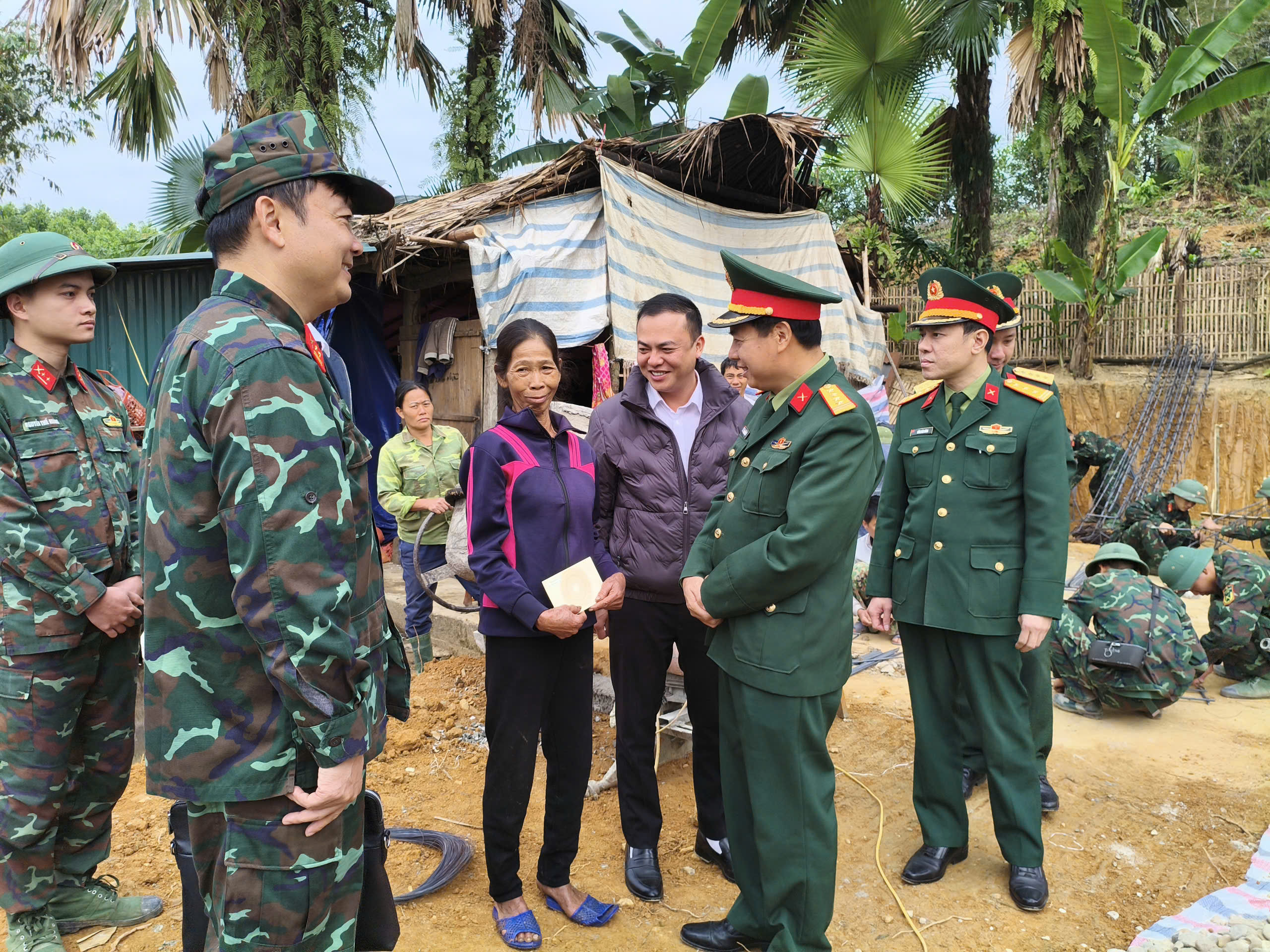 Không chỉ kiểm tra, động viên bộ đội, đoàn công tác còn thăm hỏi và trao quà cho các gia đình được hỗ trợ. Những cái bắt tay, lời hỏi thăm chân tình đã để lại nhiều xúc động, làm ấm lòng bà con và càng bồi đắp thêm tình nghĩa quân – dân.