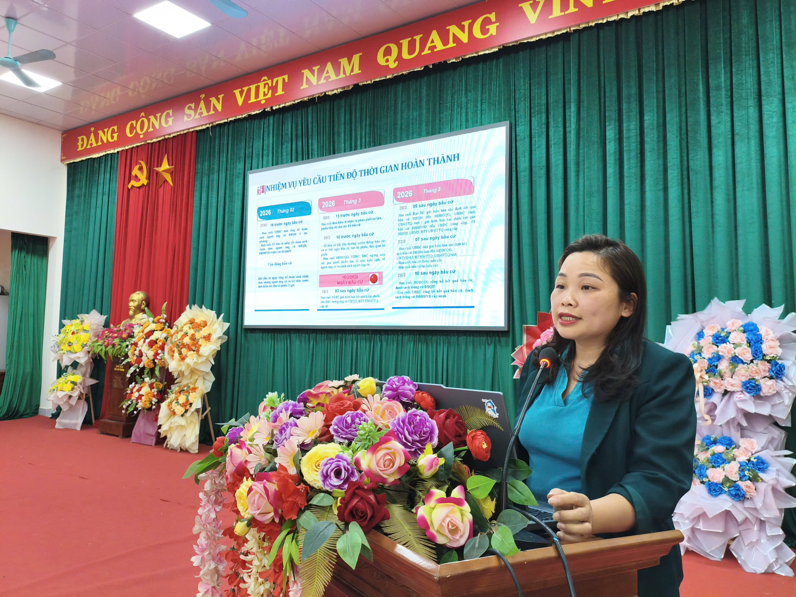Đồng chí Đặng Thị Ghến, Trưởng phòng Văn hóa - Xã hội tập huấn cho các thành viên trong các tổ bầu cử