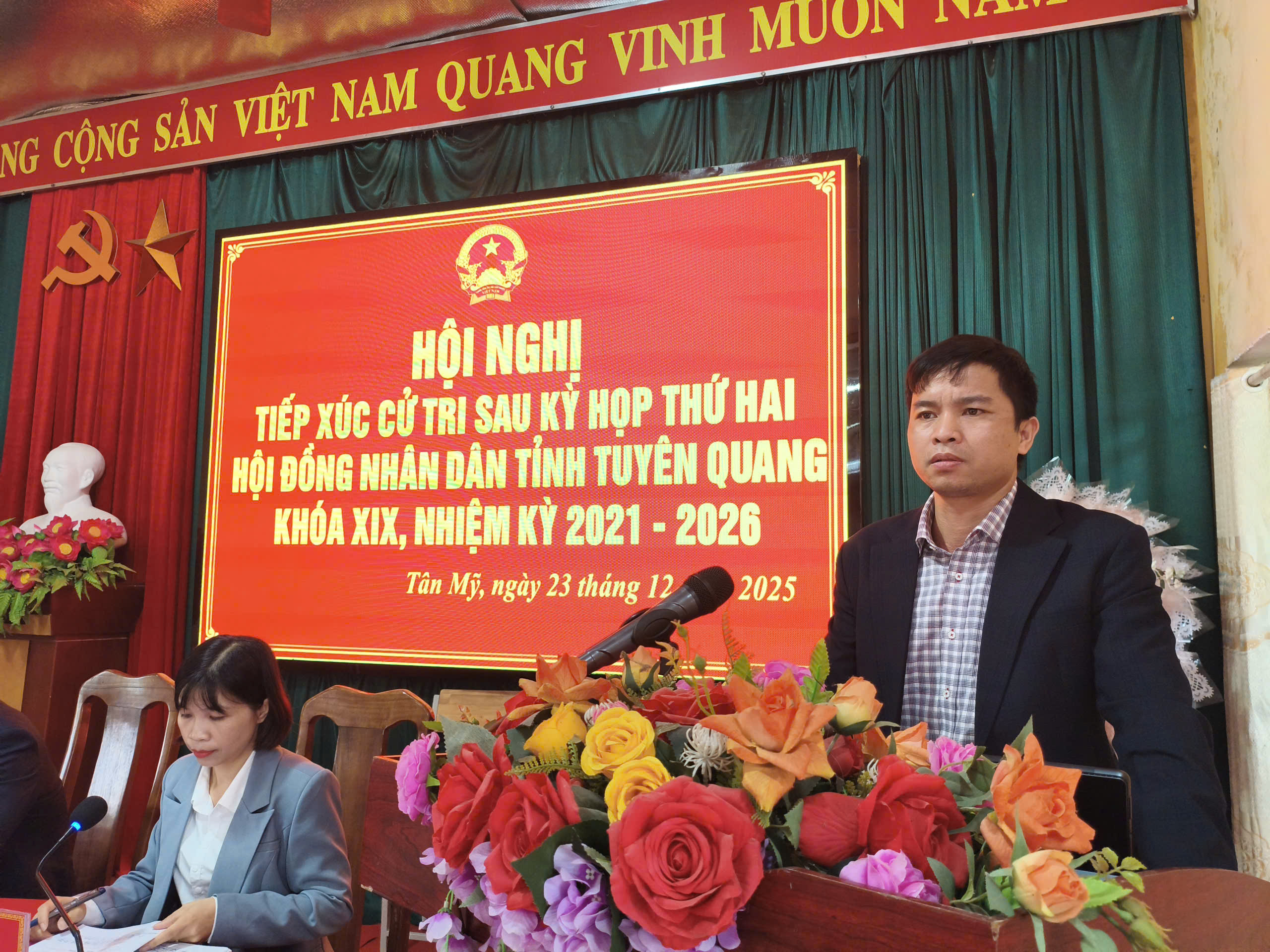 Tại hội nghị, các cử tri đã được nghe báo cáo về kết quả Kỳ họp thứ hai, HĐND tỉnh khóa XIX. Đồng thời, đoàn đại biểu cũng thông tin về lộ trình bầu cử đại biểu Quốc hội khóa XVI và đại biểu HĐND các cấp nhiệm kỳ 2026 – 2031; phổ biến nội dung Nghị quyết Đại hội đại biểu Đảng bộ tỉnh Tuyên Quang lần thứ I, nhiệm kỳ 2025 – 2030.