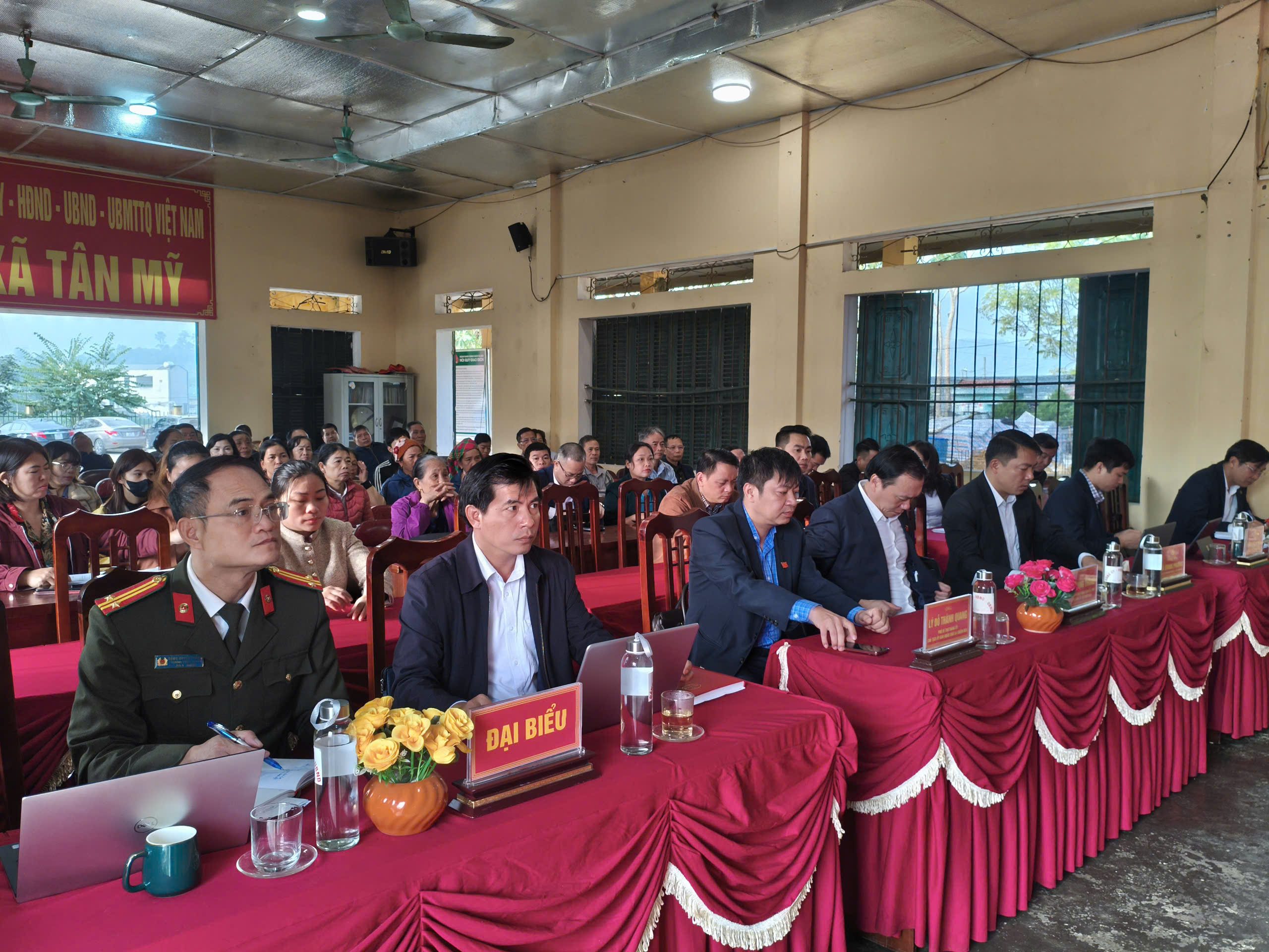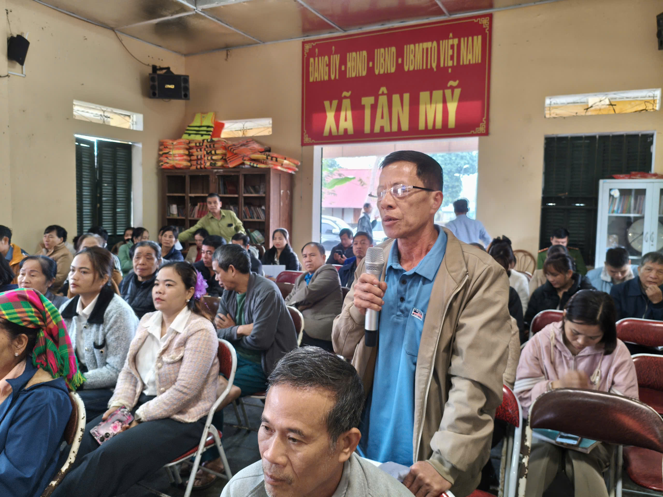 Trực tiếp giải đáp các kiến nghị, lãnh đạo UBND xã Tân Mỹ đã trả lời các vấn đề thuộc thẩm quyền, đặc biệt là công tác quản lý đất đai, tiến độ thực hiện các tiêu chí nông thôn mới và triển khai hạ tầng quy mô nhỏ tại các thôn, bản.