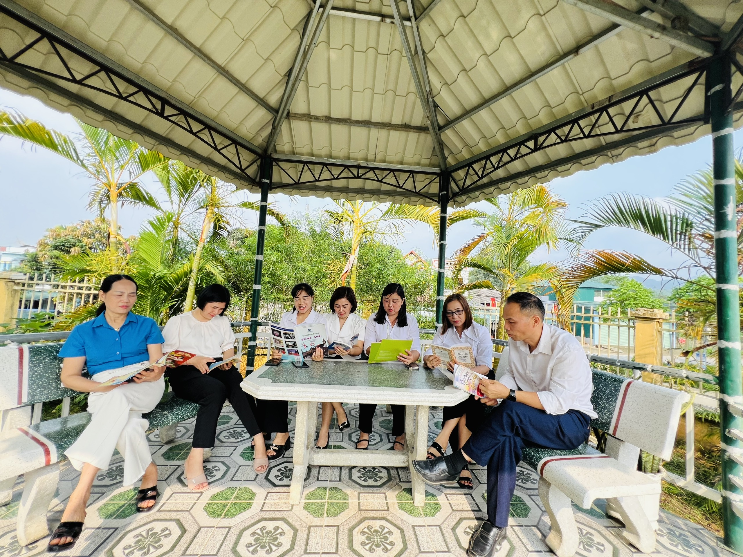 Giáo viên trưởng PTDTBT THCS Hùng Mỹ đọc sách hưởng ứng ngày sách và văn hóa đọc